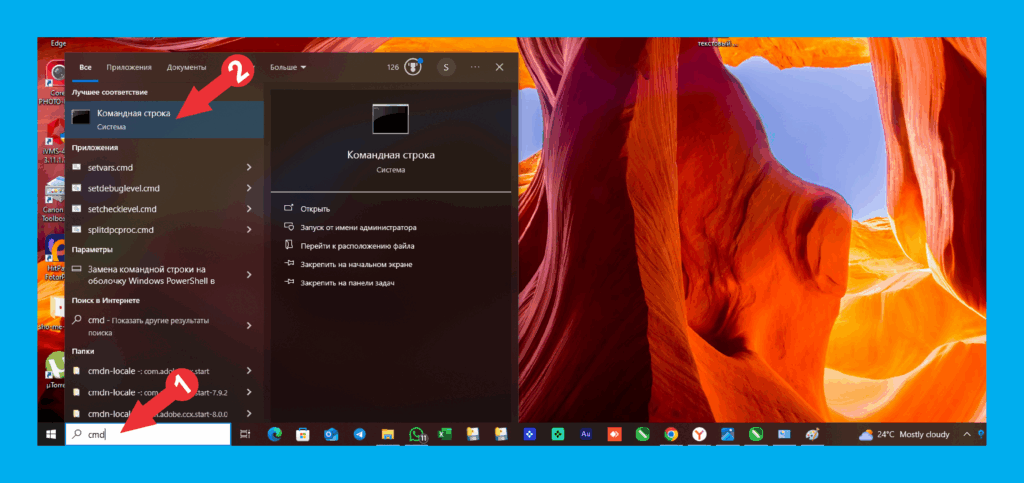 Ашылған терезеге cmd деп теріп, Enter пернесін басыңыз.